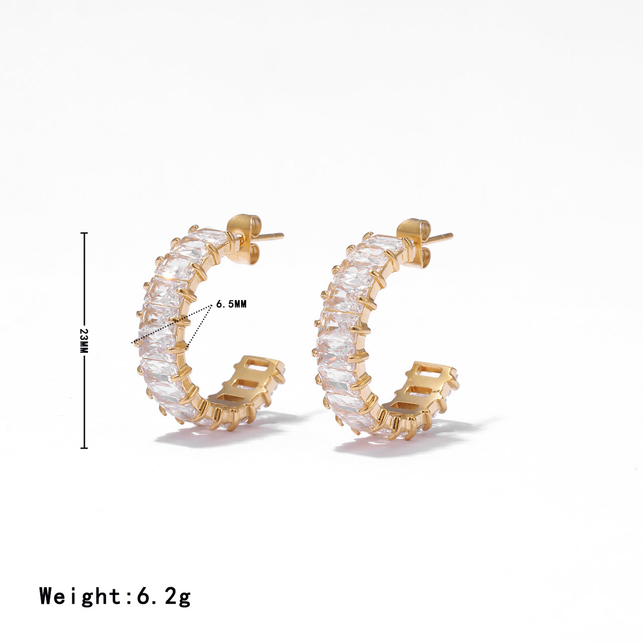 Stainless steel Earring with CZ, 6.5X23MM