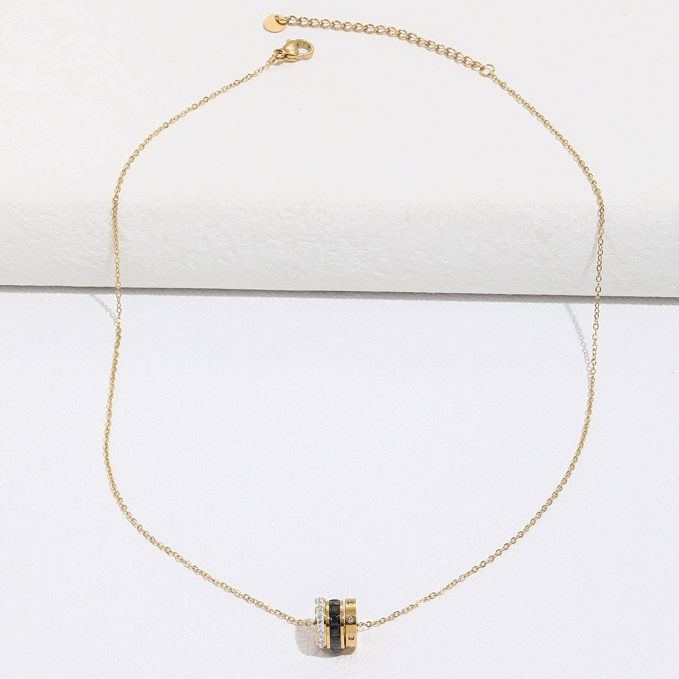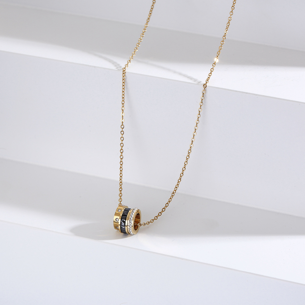 Stainless Steel Necklace With Black and Clear Crystal ( pendant in three pieces)